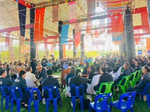 โดยมี นายพิสิษฐ์ชัย อภัยปิยกุล รองผู้ว่าราชการจังหวัดอุดรธานี เป็นผู้กล่าวต้อนรับและบรรยายสรุปสถานการณ์ในภาพรวมของจังหวัด มี นายพงศ์ศิริ ชื่นบาน ผอ.ปปส.ภ.4 นายเพิ่มพงษ์ เชาวลิต และนายพิสุทธิ์ ภู่เงิน ที่ปรึกษา สนง.ป.ป.ส. หัวหน้าส่วนราชการ/ผู้แทนส่วนราชการระดับจังหวัด หัวหน้าส่วนราชการอำเภอวังสามหมอ ผู้บริหารองค์กรปกครองส่วนท้องถิ่น ผอ.รพ.สต. ผู้บริหารสถานศึกษาในพื้นที่ตำบลคำโคกสูง ปลัดอำเภอ กำนันทุกตำบล ผู้ใหญ่บ้านในพื้นที่ ชรบ.ตำบลบะยาวและตำบลคำโคกสูง ตัวแทนหมู่บ้านกองทุนแม่ของแผ่นดินทั้ง 47 หมู่บ้าน ผู้ผ่านการบำบัดพร้อมครอบครัว และประชาชนในพื้นที่ เข้าร่วมโครงการฯ จากนั้น เลขาธิการ ป.ป.ส. และคณะ ได้ลงพื้นที่ตรวจเยี่ยมให้กำลังใจพร้อมมอบสิ่งของยังชีพแก่ครอบครัวผู้ผ่านการบำบัด จำนวน 2 ครัวเรือน ในพื้นที่บ้านแหลมทอง ตำบลคำโคกสูง