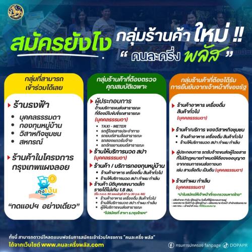 สมัครยังไง กลุ่มร้านค้าใหม่ “คนละครึ่งพลัส”